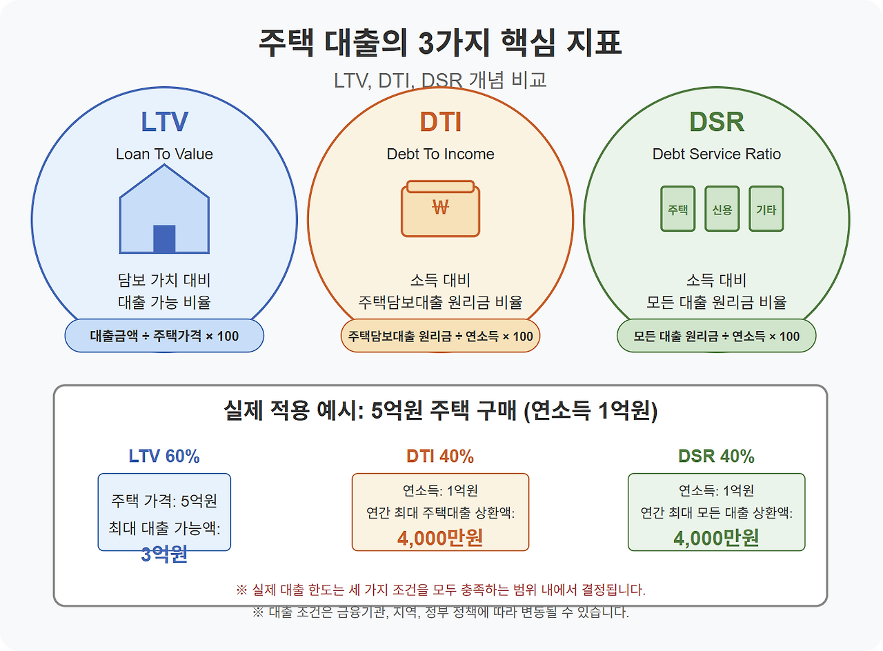 LTV는 주택 가격 대비 대출 가능한 비율을 의미합니다. 예를 들어, LTV가 70%라면 5억 원짜리 집은 최대 3.5억 원까지 대출받을 수 있습니다.