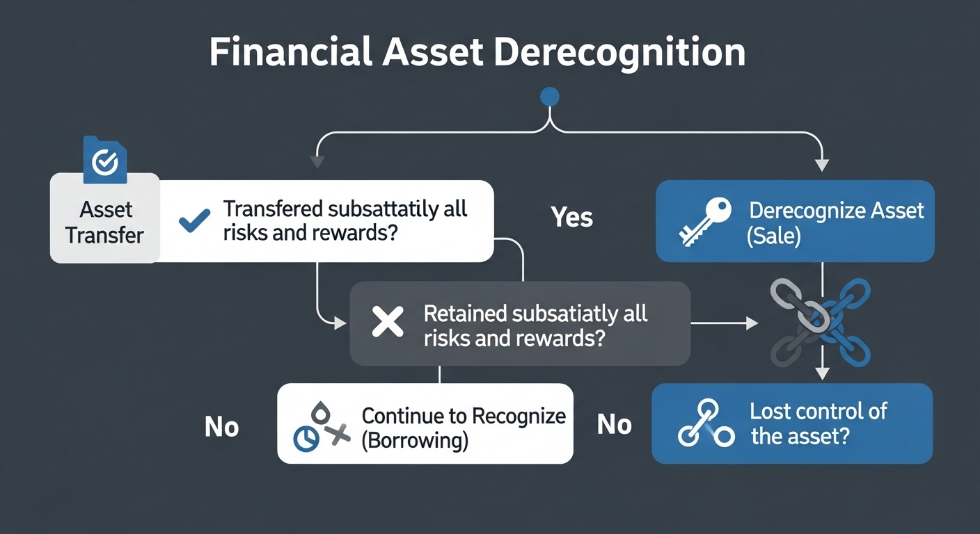 - YES (위험과 보상 대부분 이전): ➡️ 자산 제거 (매각 거래). 장부에서 자산을 없애고 처분손익을 인식합니다.