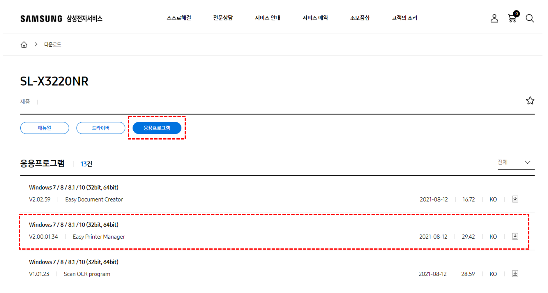 3. 응용프로그램 - Easy Printer Manager 다운로드 및 설치