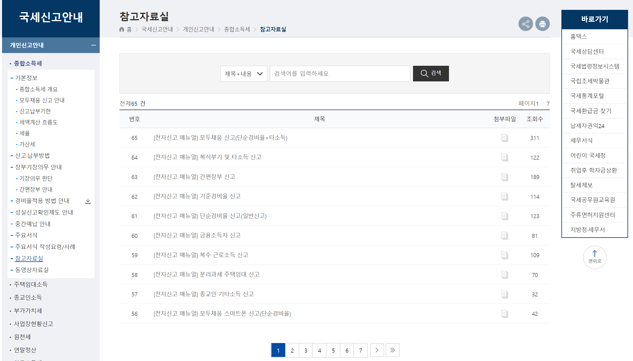 종합소득세 신고 관련한 전자신고 메뉴얼은 국세청 홈페이지 - 참고자료실에서 다운로드 가능함