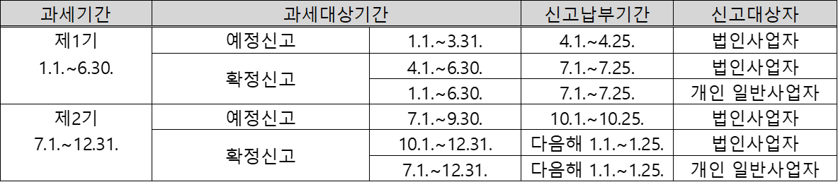 - (과세기간) 1.1.~ 12.31.까지 1년